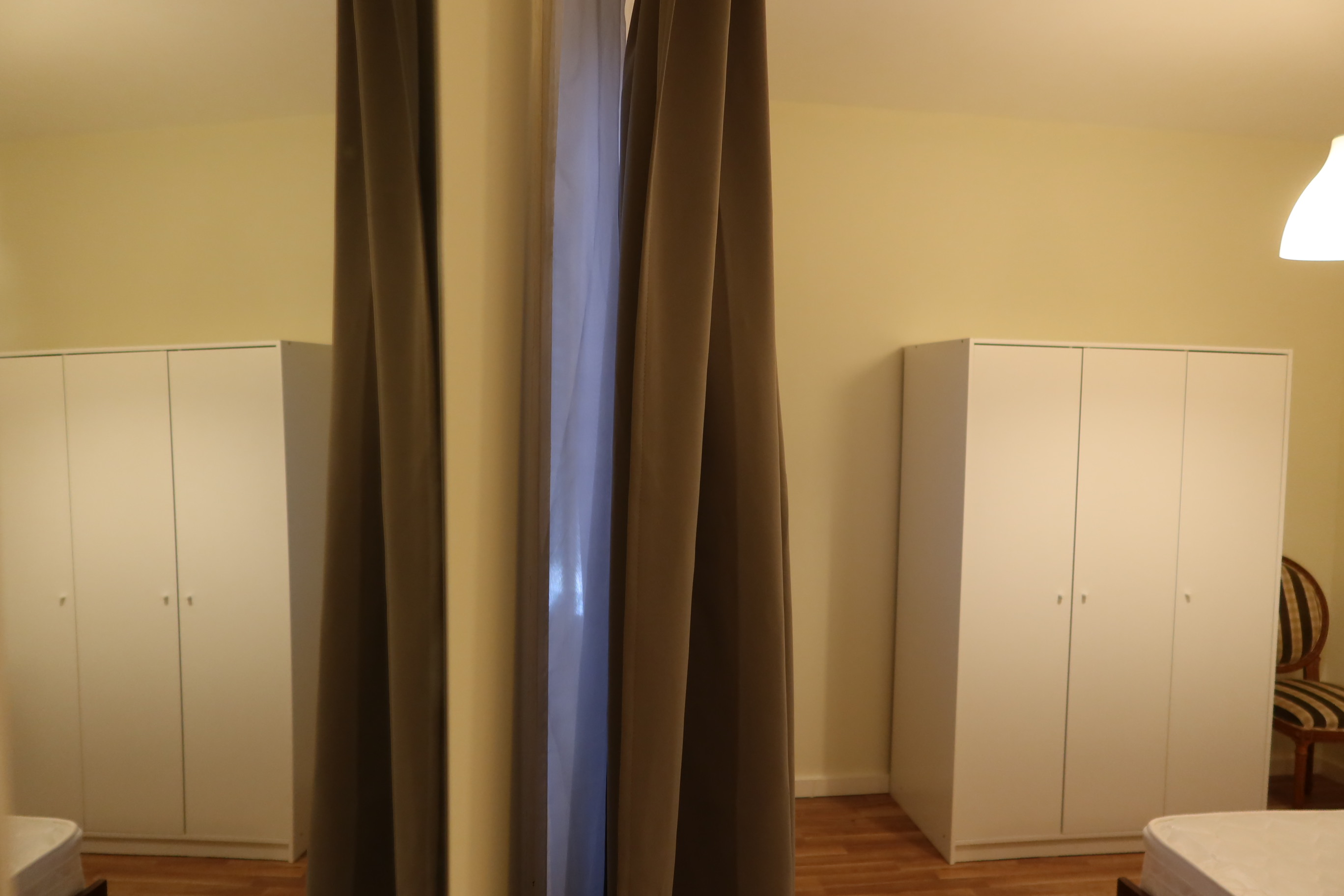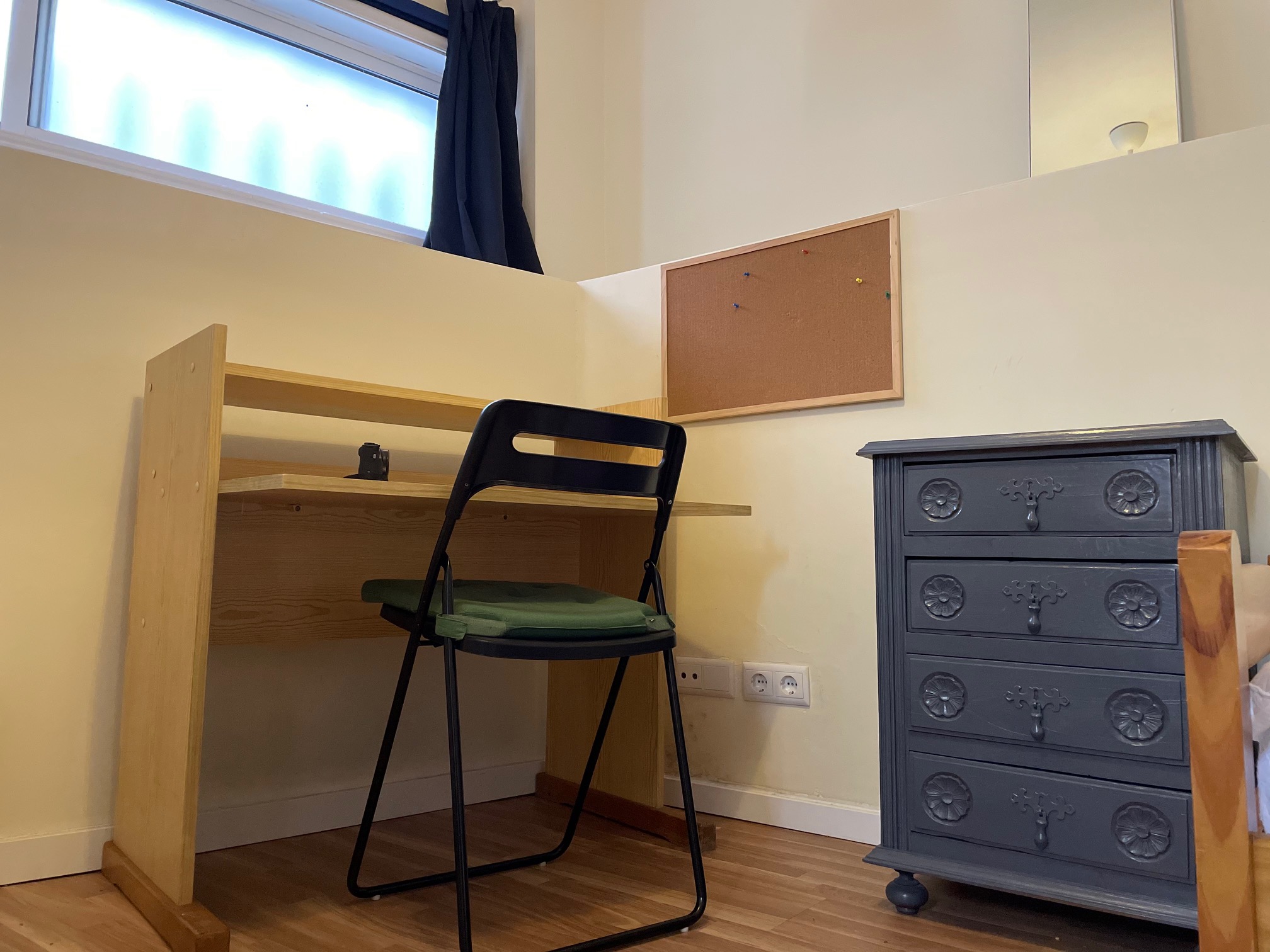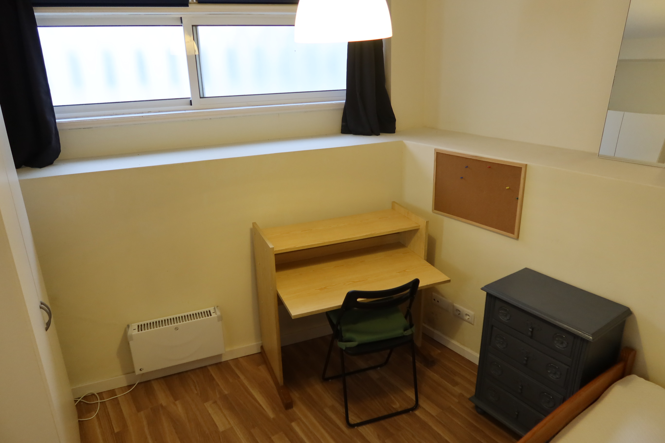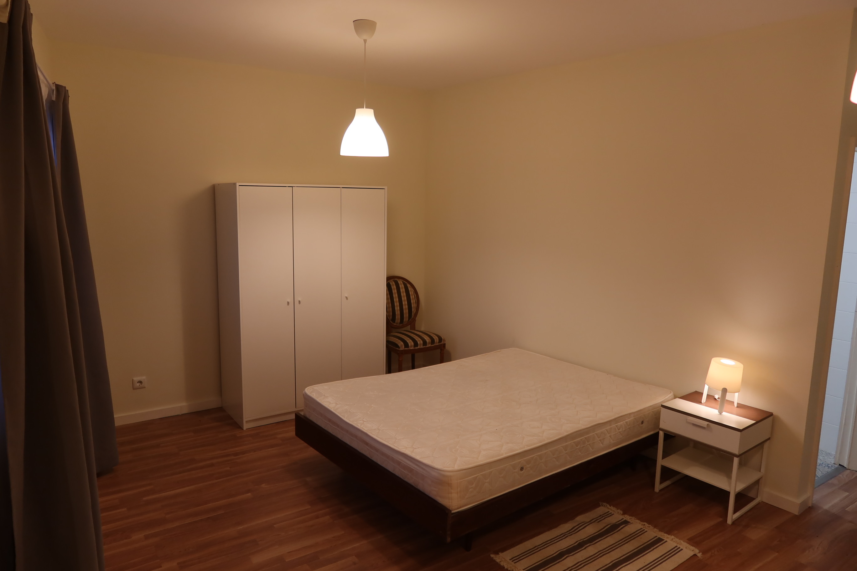 7 rooms for single occupation; 5 ensuite rooms with private bathroom and 2 other rooms sharing 1 bathroom for them. All rooms have beds, wardrobes, desk and chair, curtains, big mirror, carpet, lamps and tv connection. Each room has a specific and private key, as well as an electrical heater independently regulable.