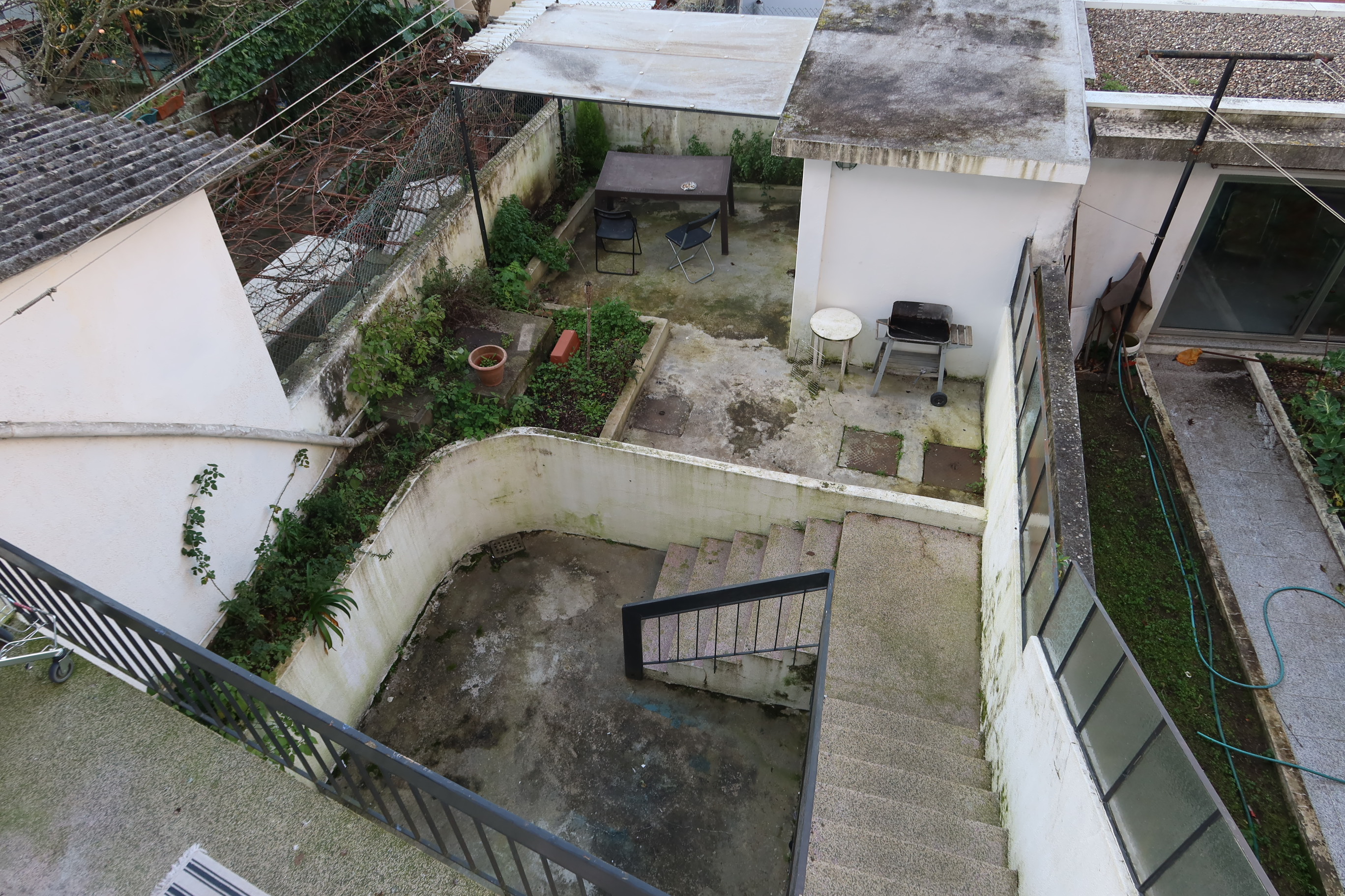Shared laundry in the patio, with washing machine and manual tank, as well as space for natural drying and space for residents belongings.