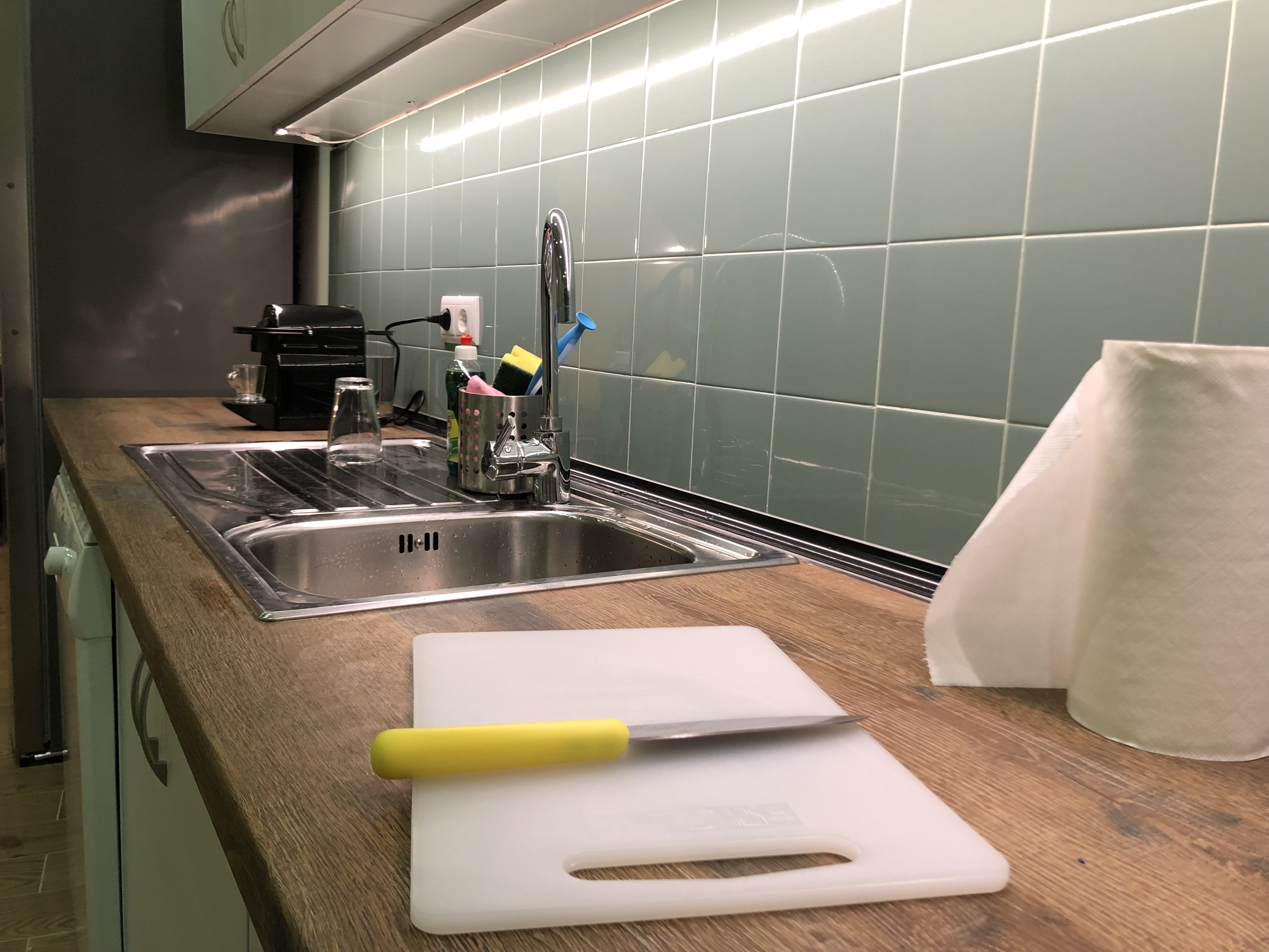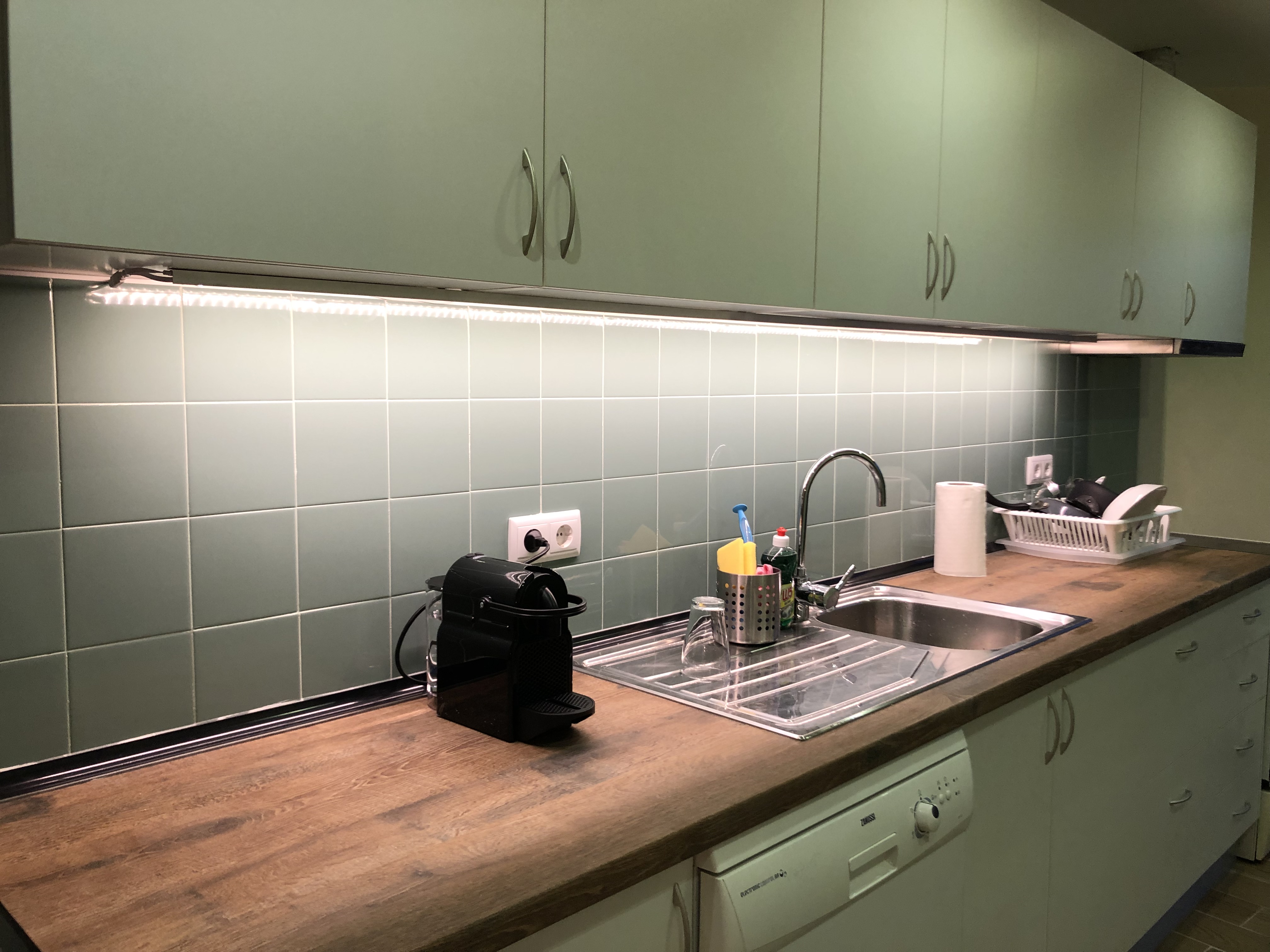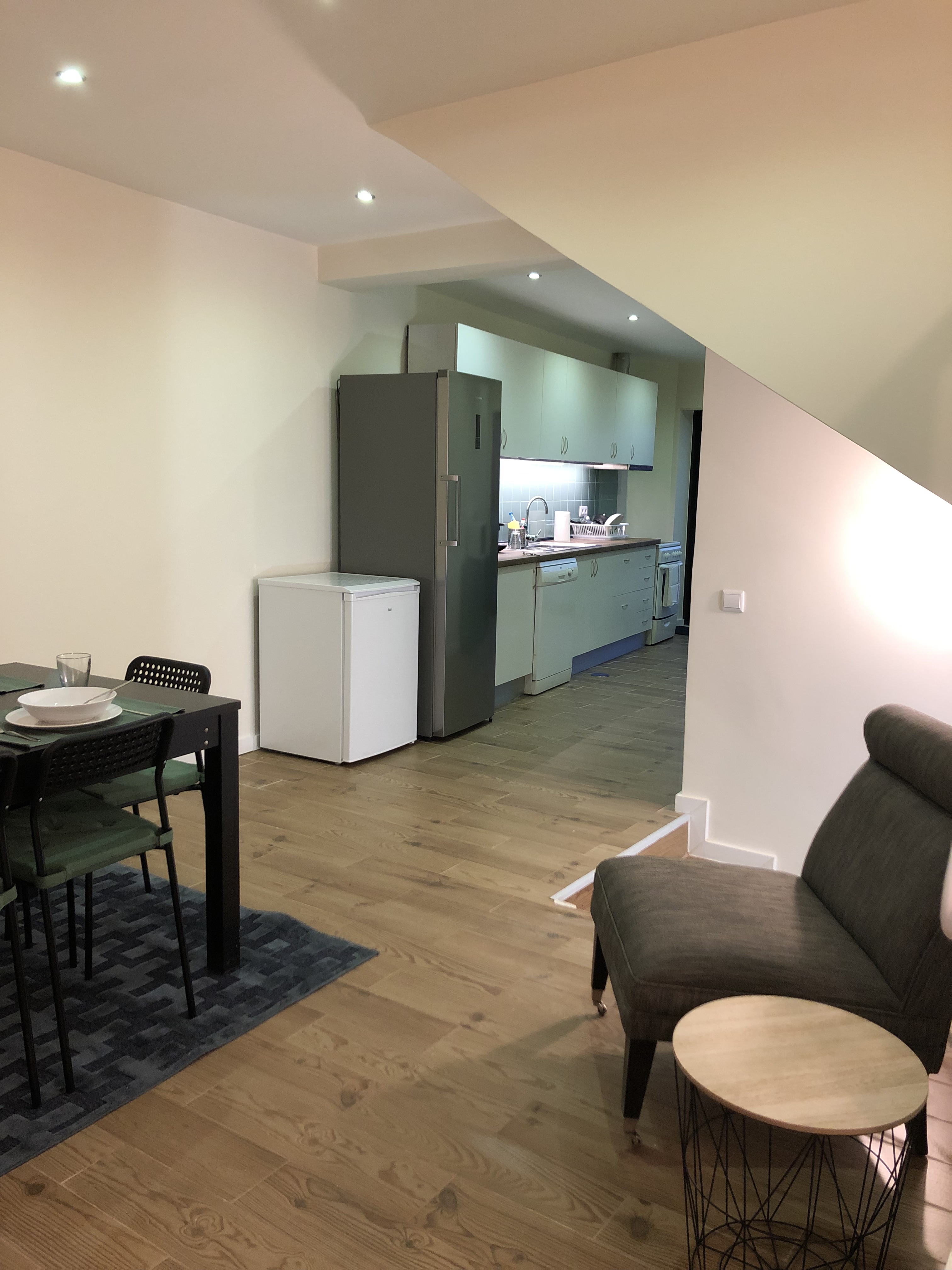 Big shared kitchen with spacious eating/social area – with hob, oven, microwave, dishwasher, big fridge, freezer, coffee machine, toaster, mixer, dishes, glasses, cutlery and all equipment you may need to cook and to eat.